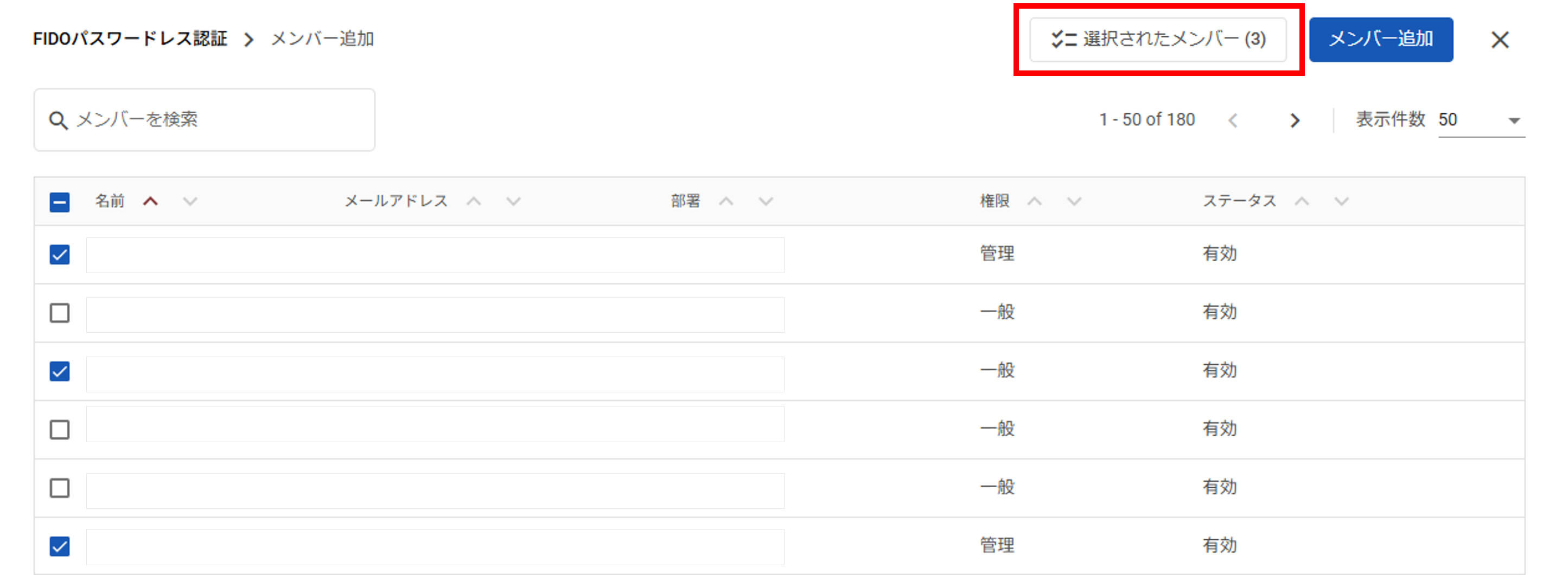 選択メンバーの確認と解除:選択されたメンバーを一覧で確認できるようになり、一覧から直接チェックを外すことが可能になりました。